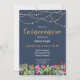 Dark, dramatic navy background with bright, watercolor flowers, gold string lights and the back is all gold sparkly glitter! The perfect, elegant invitation for your Quinceanera celebration. You can easily edit your invitation using Zazzle's easy to use design tool. If you need assistance or are looking for coordinating products, please feel free to contact us through our store.