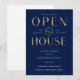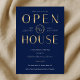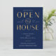 Create stylish business event invites for your house warming or new business party with this faux gold effect Open House Invitation. This elegant navy blue and gold open house event invitation features a trendy layout with sophisticated fonts, space for your logo and event details, perfect to invite guests to your Housewarming Celebration.