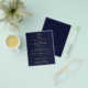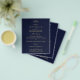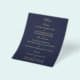 Elegant Navy and Gold Wedding Menu Flyer. Add your custom information to make the perfect presentation.