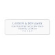 This return address label features a clean, minimalist design with centred text on a white background. The deep navy blue colour provides a sophisticated contrast, enhancing the modern and formal style. Elegant serif typography is used for both the name and address sections, creating a cohesive and professional look. Ideal for official communications or special occasions, this label exudes clarity and simplicity through its restrained use of colour and lack of decorative elements.