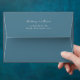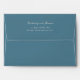 This elegant wedding envelope features a minimalist design with a deep blue background and crisp white text, creating a sophisticated contrast. The layout is clean and centred, emphasizing clarity and readability, perfect for formal invitations or announcements. With an understated style that combines modern typography in script and serif fonts, this envelope conveys a sense of professionalism and elegance. Its simple yet refined aesthetic makes it ideal for couples looking to add a touch of class to their special day.