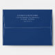 This wedding envelope features a minimalist design with a deep blue background and crisp white text, creating an elegant contrast. The layout is clean and centered, emphasizing the names "Lauren & Benjamin" in a sophisticated serif font, followed by their address details. Its simple yet formal style makes it perfect for weddings or other special occasions, conveying a sense of professionalism and sophistication. The absence of additional graphics keeps the focus on the essential information, ensuring clarity and versatility for various uses.