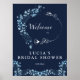 Elegant Navy Monogram Floral Bridal Shower Welcome Poster