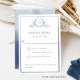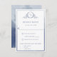 Elegant wedding RSVP card with a beautiful navy blue botanical monogram, with the ability to add meal choices, or, if you rather have RSVP without meal options, simply erase meal instructions and choices from text boxes to delete or add in its place a personal message to your guests (i.e. "hope you can make it, can't wait to see you there!"). The fine navy blue watercolor frame on the front, while the back with a delicate watercolor wash in blue hues watercolor wash. Clean, minimal, and elegant style. Monogram with initials in calligraphy. Part of our "Navy Watercolor Botanical Monogram Wedding" Collection with a variety of coordinating products available. Visit the entire collection with this link: https://www.zazzle.com/collections/navy_watercolor_botanical_monogram_wedding-119781162008756698