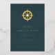 This elegant wedding invitation features a deep navy blue background with gold accents, creating a luxurious and classic feel. The design includes a prominent ship's wheel motif at the top, emphasizing a nautical theme that adds a touch of adventure to the formal event. The text is arranged in a sophisticated serif font, enhancing readability while maintaining an air of tradition and refinement. Perfect for couples who appreciate maritime charm, this invitation sets the tone for a memorable celebration.