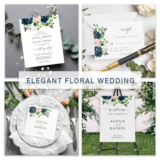 Navy pink floral watercolor wedding elegant suiteDesigned by Anka Designs