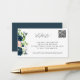 Elegant navy pink floral QR CODE wedding details Enclosure Card