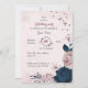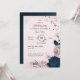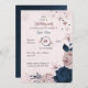 Elegant navy blue and pink flowers and some beautiful leaves birthday party invitation