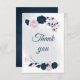 elegant navy & pink flowers botanical thank you card