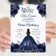 Elegant Navy Princess Floral Silver Mis Quince Invitation