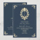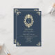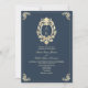 Celebrate your big day in timeless style with this elegant navy blue wedding invitation featuring ornate gold accents and a regal monogram crest. The deep navy background adds sophistication, while the QR code on the back makes RSVP and wedding website access simple for guests. A perfect blend of traditional elegance and modern convenience, ideal for a classic fall or winter wedding.