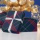 Wrap your Christmas gifts in style! This festive holiday gift wrapping paper features a classic navy blue, hunter green, red, and white Scottish tartan plaid pattern made modern on a diagonal.