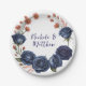 Elegant Navy Rose and Terracotta Florals Wedding Paper Plate