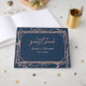 An elegant, navy and rose gold wedding guest book, with a beautiful floral border, and script lettering. Customise with your names, and wedding date.