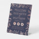 Elegant Navy & Rose Gold Floral Wedding Welcome Pedestal Sign