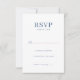 This elegant wedding RSVP card features a minimalist design with a clean white background, accented by deep navy blue text and coral-colored lines. The layout is spacious and balanced, utilizing varied typography to create visual interest, including bold serif fonts for the main heading and cursive script for personalization. The mood is sophisticated and formal, perfect for conveying an invitation with grace and anticipation. Customizable fields allow for easy personalization, making it ideal for couples planning their special day.