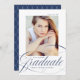 Celebrate your achievement in style with this elegant graduation announcement featuring your senior photo and a sophisticated navy modern calligraphy font. Personalize this timeless photo graduation announcement by adding your name, school name, and graduation year for a custom touch. Perfect for both high school and college graduates, this classic design offers a refined way to share your milestone with family and friends.