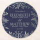 Elegant Navy & Silver Floral Wedding Collection Round Paper Coaster