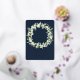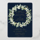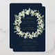 Hand painted snowberries and stems of eucalyptus arranged into a beautiful wreath against a dark navy background. The text and scattered dots on the front of the card are foil pressed. All text is fully editable. The back features an optional scattering of dots. Please view this Collection in my store for invitations with alternative wording options, different colours and for coordinating items.