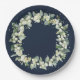 Elegant Navy Snowberry+Eucalyptus Wreath Wedding Paper Plate