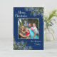 This chic navy Christmas card features your photo as well as elegant sprays of real snowflakes (my original snowflake photos) and winter greens, including pine and juniper berries. Customise the editable message from Merry Christmas to another if you prefer. Personalise with your family name. The reverse side has coordinating navy stripes and snowflakes; but if you prefer a solid colour or white on the back, feel free to "click to customise further" and delete the elements on the back layer. A beautiful photo card for any winter holiday!