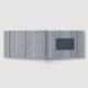 This wedding guest book features a modern and sophisticated design with alternating dark and light blue vertical stripes, creating a rhythmic pattern. The central focus is a solid dark grey-blue rectangle that houses elegant, clean sans-serif typography for the names and date, ensuring clarity and visual impact. The overall aesthetic exudes elegance and precision, making it perfect for couples seeking an understated yet refined touch for their special day.