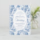 Make a refined first impression with this wedding invitation featuring classic French toile de jouy roses in elegant shades of navy blue, royal blue, dusty blue, and deep blue. Inspired by timeless European floral design, this invitation blends traditional sophistication with modern elegance, perfect for a classic, romantic, or formal wedding celebration.