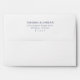 This wedding envelope features a clean, minimalist design with a focus on elegant typography. The layout is simple and centered, showcasing the names and address in a classic serif font that exudes sophistication. The deep navy blue text contrasts beautifully against the white background, creating a formal yet inviting look perfect for special occasions. With ample negative space, this design emphasizes clarity and readability, making it ideal for weddings or any formal event where a polished appearance is desired.