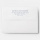 This wedding envelope features a minimalist design with a clean, white background and deep navy blue text. The layout is vertically oriented, emphasizing simplicity and elegance through ample negative space and centered typography. A serif font adds a touch of sophistication, making it perfect for formal occasions. The structured format highlights the names and address, ensuring clarity while maintaining an uncluttered appearance. Ideal for weddings, this envelope exudes a professional and polished vibe.