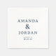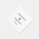 These wedding napkins feature a minimalist and elegant design with a clean, white background. The typography is sophisticated, using uppercase serif fonts for the names and a sans-serif font for additional details, creating a balanced and modern look. The deep navy blue text provides a striking contrast, enhancing readability and adding a touch of formality. Perfect for weddings, these napkins convey a sense of celebration and refinement through their simple yet stylish layout.