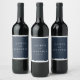 This elegant wedding wine label features a sophisticated navy blue background with crisp white borders, creating a timeless and refined look. The design highlights clean serif typography paired with delicate cursive script for a touch of intimacy, making it perfect for personalizing your special day. Its minimalist style focuses on clarity and balance, ideal for couples seeking a classic yet modern aesthetic to commemorate their celebration.