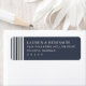 This return address label features a minimalist and elegant design with a deep navy blue background that contrasts beautifully with the crisp white text. The layout is vertically oriented, showcasing clean lines and ample negative space for a modern aesthetic. A series of thin vertical stripes on the left adds a subtle border effect, enhancing the sophisticated look. The typography uses a classic serif font, ensuring legibility and balance, while the overall style conveys formality and refinement, making it perfect for official communications or special announcements.