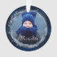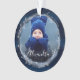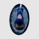 Elegant Navy Watercolor Ink & Jewels Photo Wreath Ornament