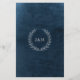 Elegant and classy wedding design. Navy blue watercolor paper. White lettering. Elegant font combo. Wedding monogram: classic laurel wreath with bride’s and groom’s initials in it. Perfect for beach wedding, seaside wedding, coastal wedding, or ocean wedding. Blue and white colour theme, simple elegant design make it a great choice for a classy, semi-formal wedding.