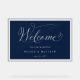 Make a statement and welcome your guests to your wedding with this elegant navy blue acrylic sign! Ability to use this sign for any event. Design with an elegant and sleek frame in an attractive navy blue colour and beautiful modern handwritten calligraphy details in white. 12" x 18" is our default size, you can choose from several size options. Ideal for navy-theme or celestial theme weddings. "IMPORTANT NOTE: Small sizes come with a wood block to stand, bigger sizes need an easel or surface to stand so they won't warp. Dimensions of sign from demo photo with stand: 24" x 36"
