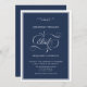 Elegant Navy & White Classic Wedding Invitation. Design features calligraphy script ''and'' in trendy lettering on a navy blue background inside white frame.