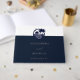 Capture treasured memories of your special day with this elegant, personaized coastal wedding guest book. Featuring a crisp graphic design of a dark navy blue palm tree, the rising sun over the ocean, and peaceful birds, all framed in a navy circle, this design is set against a chic navy and white stripes background. Perfect for a palm tree wedding, sea, tropical, beach wedding, or summer celebration, it showcases elegant real silver foil typography paired with a graceful calligraphy script font. A stylish and chic keepsake your guests will love signing, making it a beautiful reminder of your coastal wedding day.