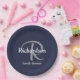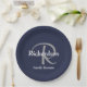 Elegant Navy White Silver Monogram Family Reunion Paper Plate