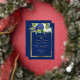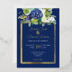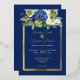 Elegant Navy White Watercolor Rose Floral Bouquets Gold Foil Wedding Invitation.