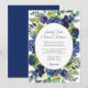Elegant Navy & White Watercolor Rose Floral Frame Wedding Invitation Card.
