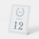 Elegant Navy White Wedding Monogram Laurel Wreath Pedestal Sign