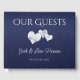 Elegant Navy with Hearts Guest Book designed with floating White Hearts on a Navy background for your Wedding Reception Accessories. The text includes: OUR GUESTS, The Bride and Groom's Names and Wedding Date. To personalise, simply insert your text into our easy template, replacing the sample.
