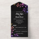 Elegant Neon Lights Roses Black Floral Wedding All In One Invitation
