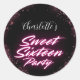 Elegant neon Pink Black Retro Sweet 16th Birthday Classic Round Sticker