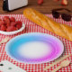 Elegant neon pink retro black Sweet 16th Birthday Paper Plate