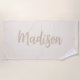 Create your own personalised beach towel with neutral beige colour elegant script name.