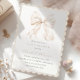 Sweet baby shower invitation that features an elegant white bow. Choose the scallopped edges for a whimsical finish.