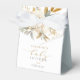 Elegant Neutral Floral Baby In Bloom Baby Shower Favour Box features beautiful white, gold and blue floral flowers and greenery along with modern calligraphy.