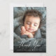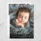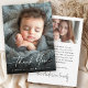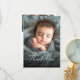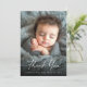 New baby thank you card featuring your photo and the text "thank you" on the front in an elegant handwritten style font. Additional photo and custom message on the back. Change colours, move and resize elements in the design tool.