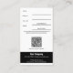 On the back, from top to bottom, the card has hand writable fields and their descriptions for new customer name, employee or referrer name, tracking ID, and expiration date. Below that are the terms and conditions, a customisable QR code, a call-to-action to scan for details, and finally the company name with contact information. The card is suitable for boutiques, shoe stores, spas, beauty salon, garage, Tyre store and more.